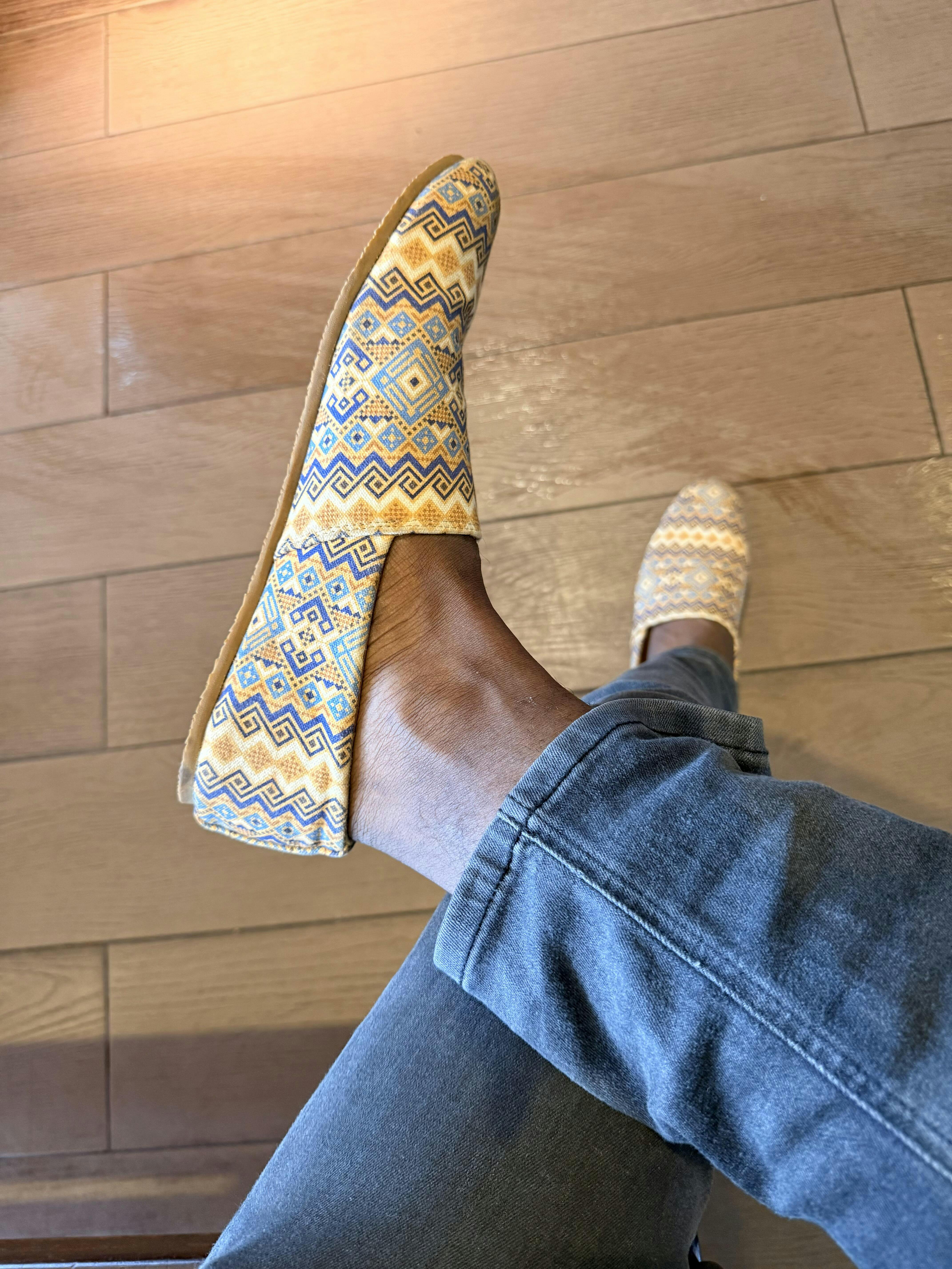 Trade in your work week hustle for a weekend adventure. Inspired by the vibrant patterns and rich textures of the African continent, these slip-on shoes are your passport to effortless style. Each pair is a unique blend of heritage and modern comfort, crafted for those who live life in full colour. Kick back, grab your coffee, and let your shoes do the talking. The weekend starts now.